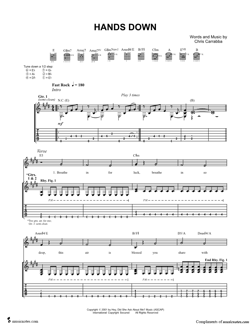 Voice, range: B3-C#6 Guitar 1 Guitar 2 Guitar 3 Backup Vocals Strum | |