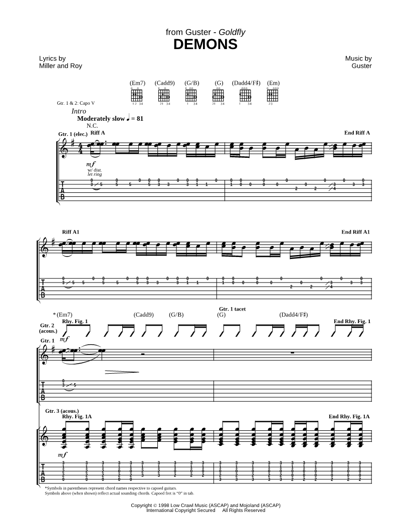 Voice, range: E4-A5 Guitar 1 Guitar 2 Guitar 3 Backup Vocals | |