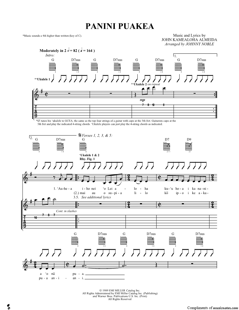 Voice 1, range: E4-E4 Ukulele 1, range: D4-D6 or Guitar Ukulele 2 or Guitar | |