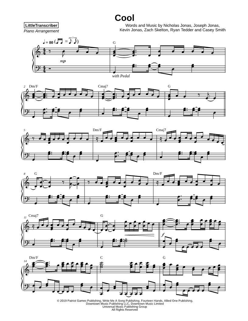 Many of the arrangements on Musicnotes have transpositions available, typically in C Major, as well as 3 sharps and 3 flats. If you do not see your desired key, you can request a transposition by reaching out to Customer Support.