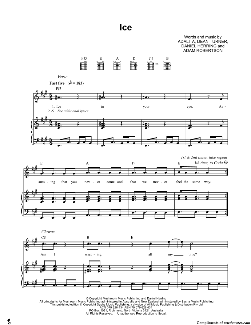 Voice, range: F#4-E5 Piano Guitar | |