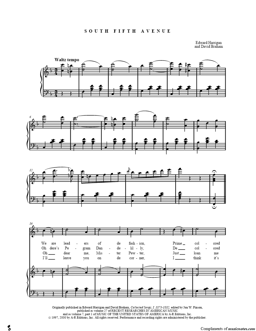 We are leaders of de fashion, Prime colored quality, We're't recognized wheree'er we go as elite society; At all de grand receptions, It's come along, oh do, And ornament the mansion on Avenue. |