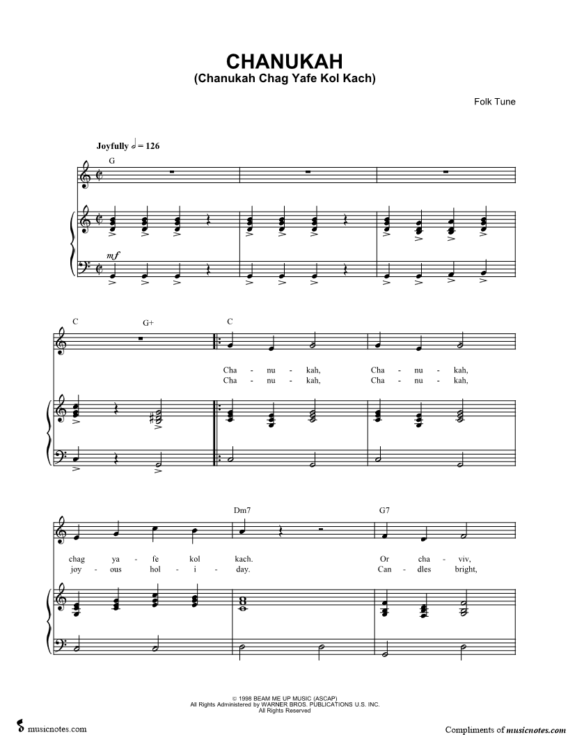 Chanukah - Bb Instrument & Piano/Vocal (Chanukah Chag Yafe Kol Kach)