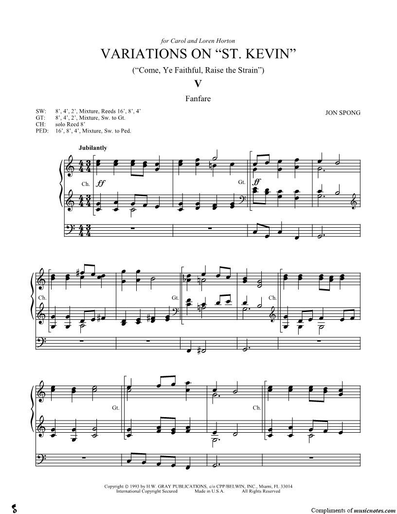 Collection: Variations on "St. Kevin" ("Come Ye Faithful Rise the Strain")