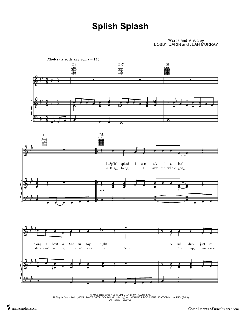 Spliah, splash, I was takin' a bath 'long abouta Saturday night. |
