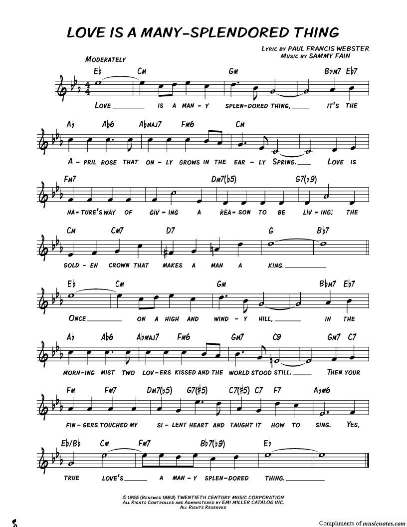 Love is a many splendored thing, it's the April rose that only grows in the early Spring. |