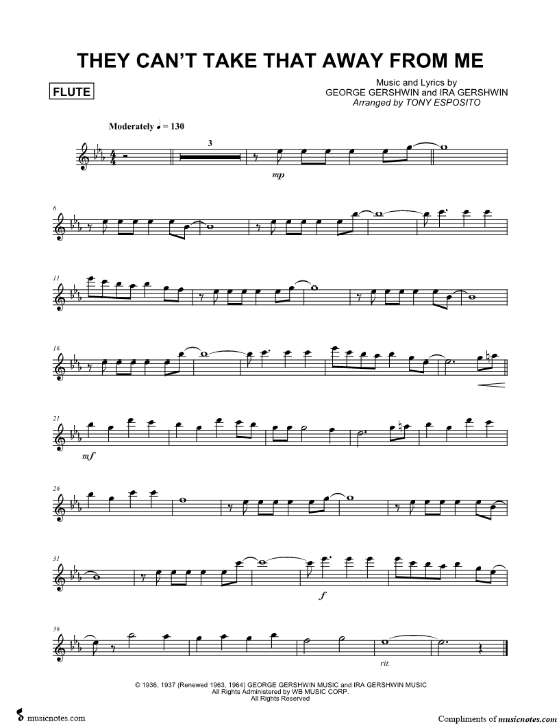 They Can't Take That Away From Me - Flute |