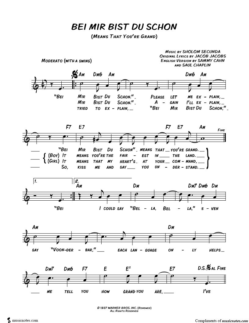 ``Bei Mir Bist Du Schon.'' Please let me explain, ``Bei Mir Bist Du Schon'' means that you're grand. |
