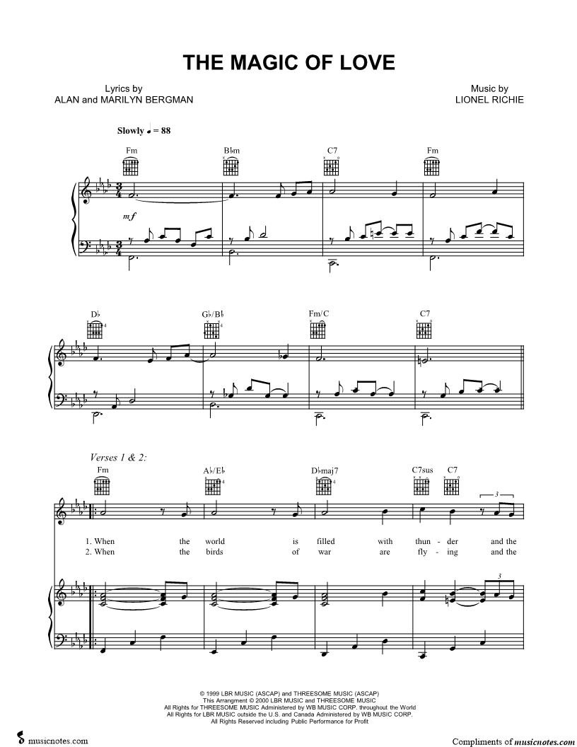 When the world is filled with thunder and the winds are storming above, deep within the night we wonder if we've lost the magic of love. |