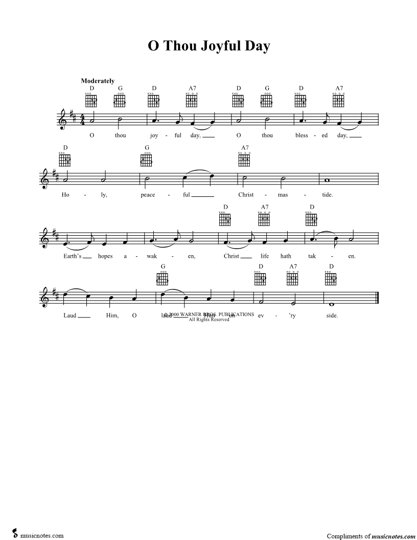 O thou joyful day, O thou blessed day, Holy, peaceful Christmastide. |