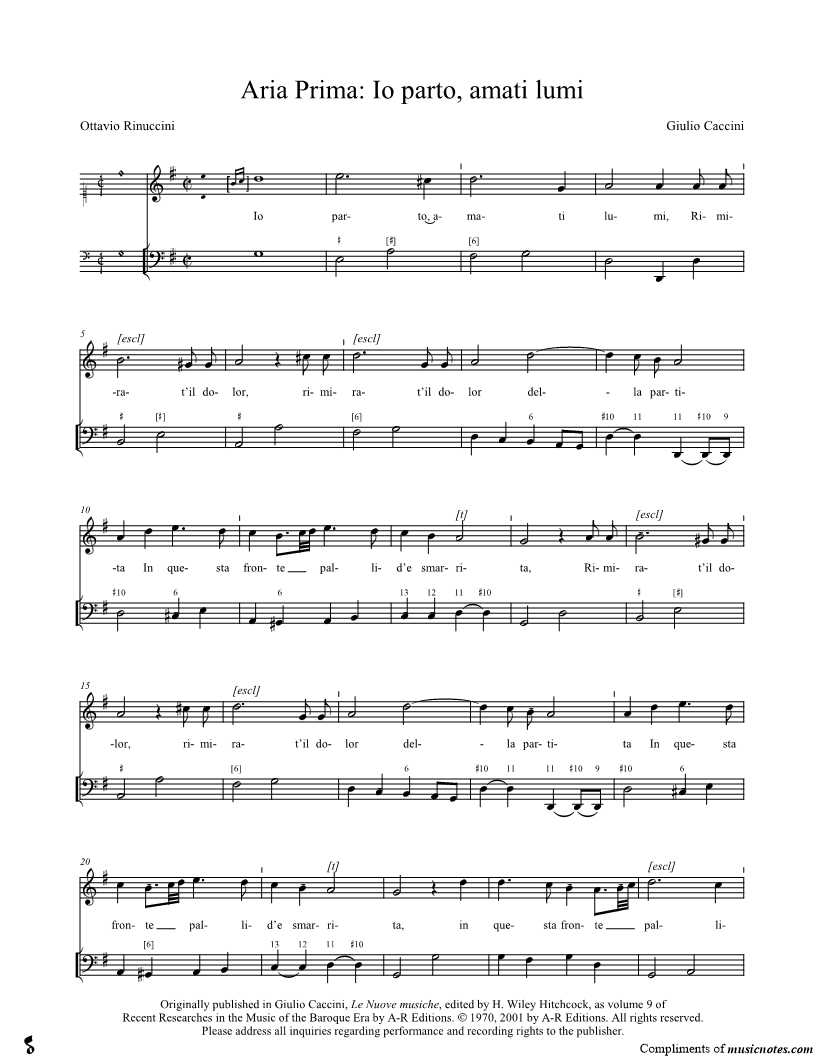 Io parto, amati lumi, Rimirat'il dolor, rimirat'il dolor della partita In questa fronte pallid'e smarrita. |
