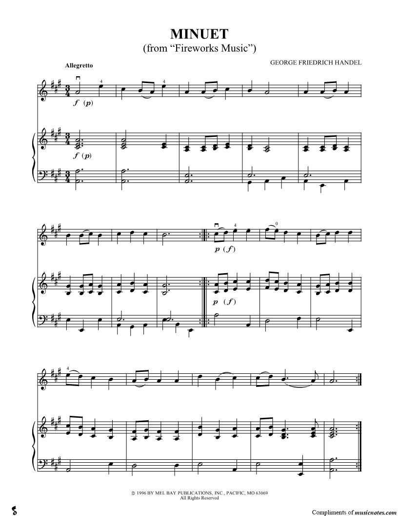 Music for the Royal Fireworks: Minuet I - Violin & Piano |