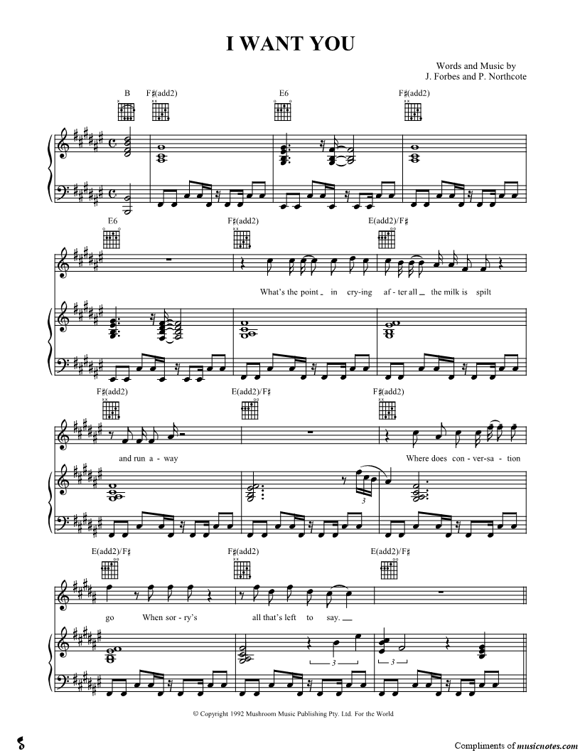 Voice, range: F#4-C#6 Guitar Piano, range: B1-A#5 | |