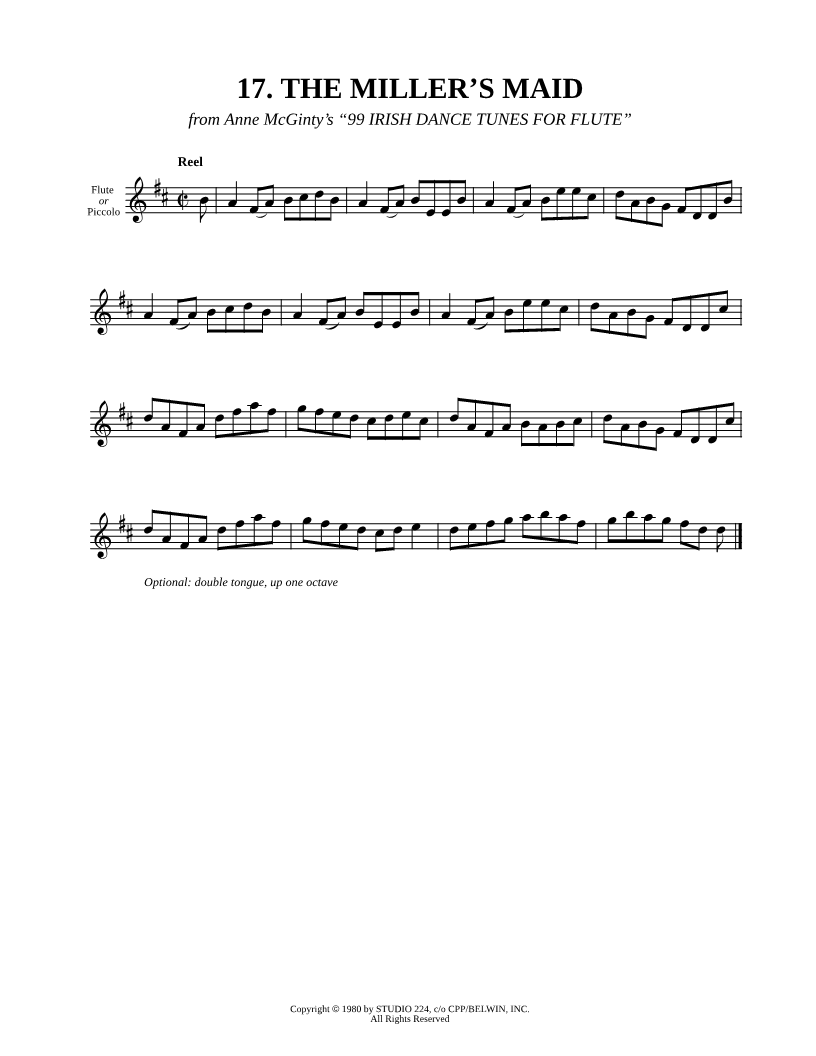 Flute, range: D4-B5 or Piccolo | |