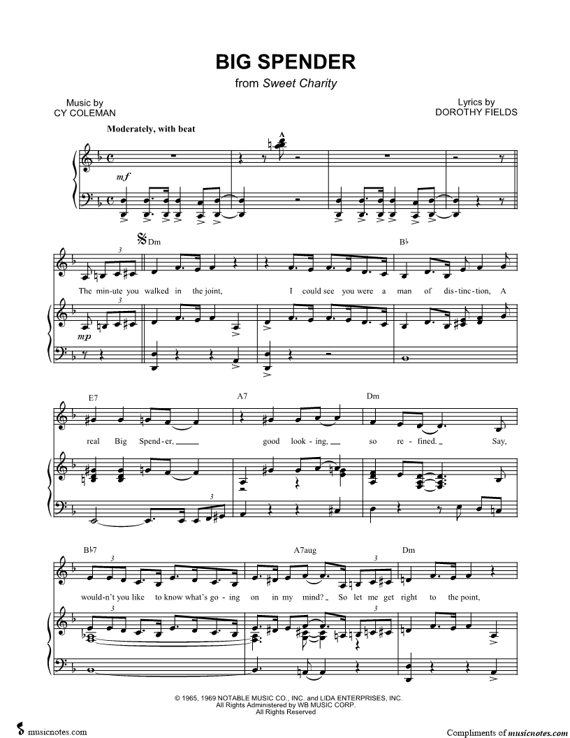 The minute you walked in the joint, I could see you were a man of distinction, A real Big Spender, good looking, so refined. |