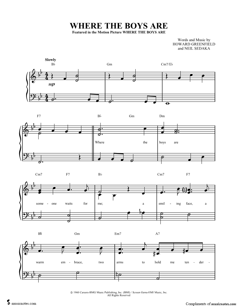Where the boys are someone waits for me; a smiling face, a warm embrace, two arms to hold me tenderly. |