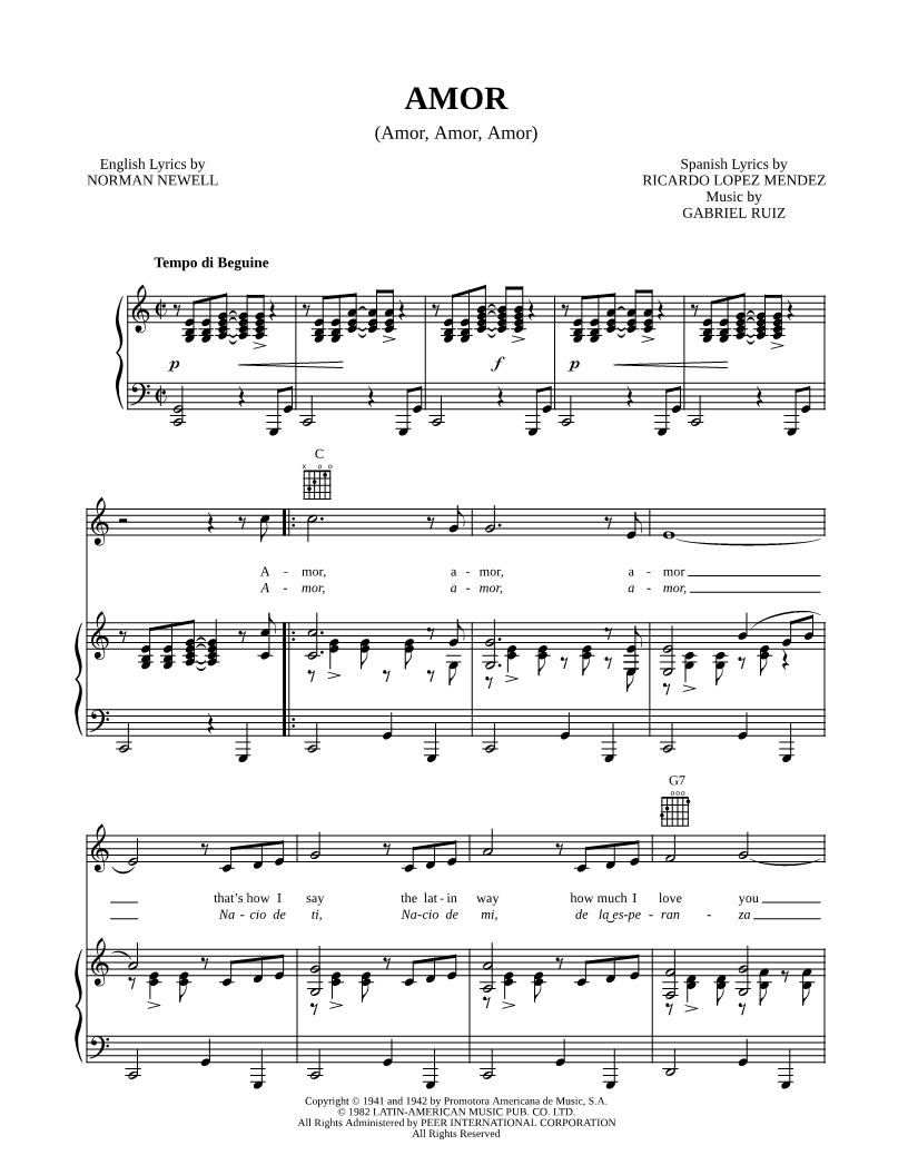 Amor, amor, amor that's how I say the latin way how much I love you Amor, amor, amor for every night and every day I'm thinking of you. |