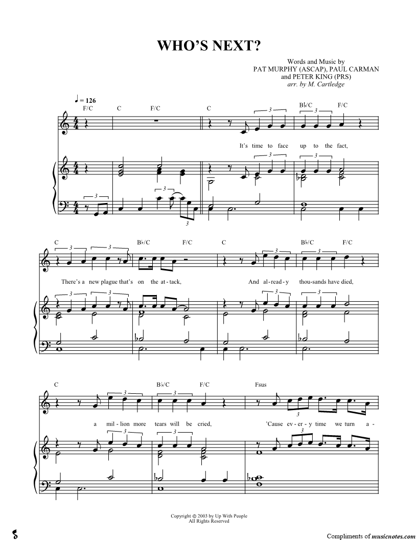 Musicnotes sells a wide variety of digital sheet music products including Singer Pros, Beginner Notes, Choral music, Piano Solos, Lead Sheets, Piano/Vocal/Guitar, Solo and Accompaniment, and fretted instrument tablature.