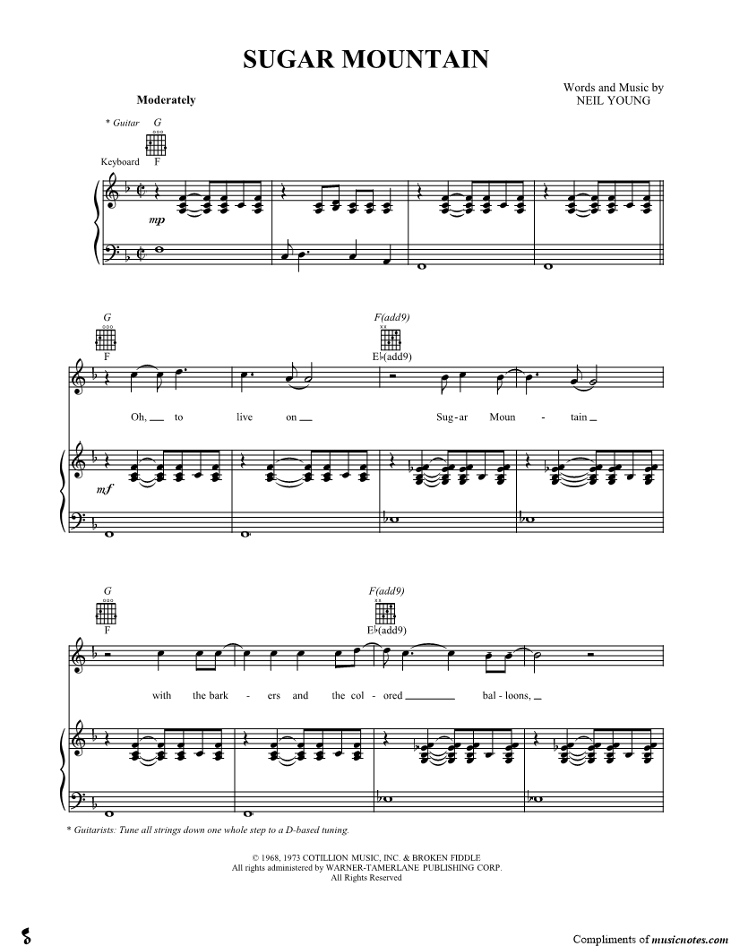 Oh, to live on Sugar Mountain with the barkers and the colored balloons, |