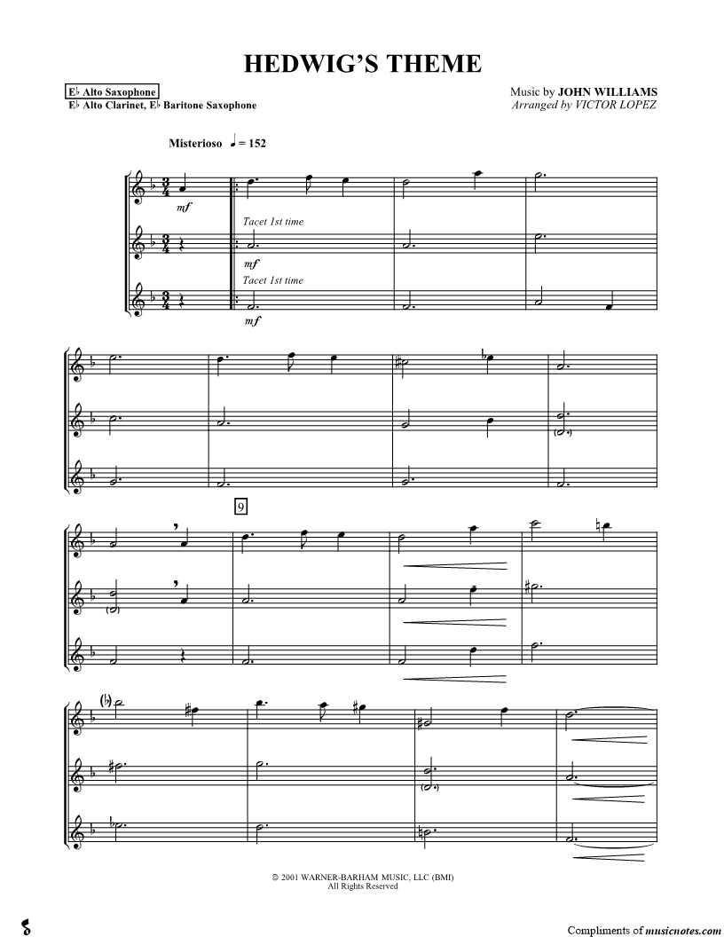 Selected Themes From Harry Potter and the Sorcerers Stone - Alto Sax |
