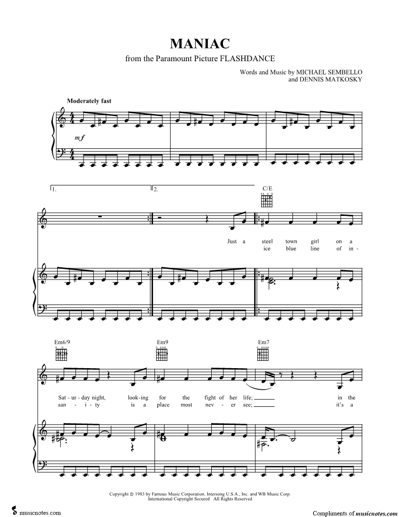 Musicnotes sells a wide variety of digital sheet music products including Singer Pros, Beginner Notes, Choral music, Piano Solos, Lead Sheets, Piano/Vocal/Guitar, Solo and Accompaniment, and fretted instrument tablature.