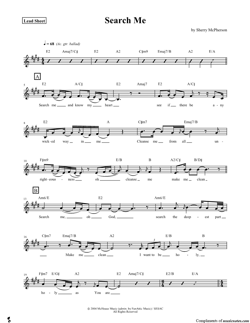 Search me and know my heart see if there be any wicked way in me Cleanse me from all unrighteousness oh cleanse me make me clean Search me, oh God, search the deepest part Make me clean I want to be holy, holy as You a |