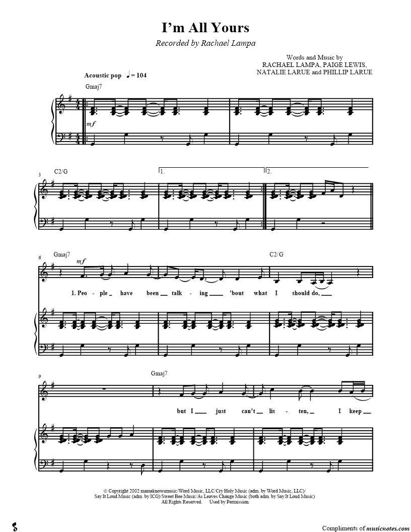 Musicnotes sells a wide variety of digital sheet music products including Singer Pros, Beginner Notes, Choral music, Piano Solos, Lead Sheets, Piano/Vocal/Guitar, Solo and Accompaniment, and fretted instrument tablature.