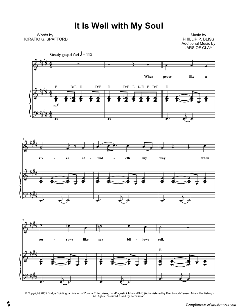 When peace like a river attendeth my way, when sorrows like sea billows roll, whatever my lot, |