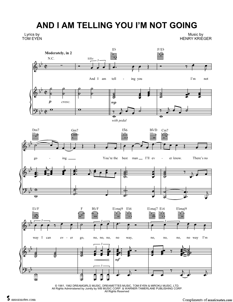 And I Am Telling You I'm Not Going Dream Girls/Vocal Selections |
