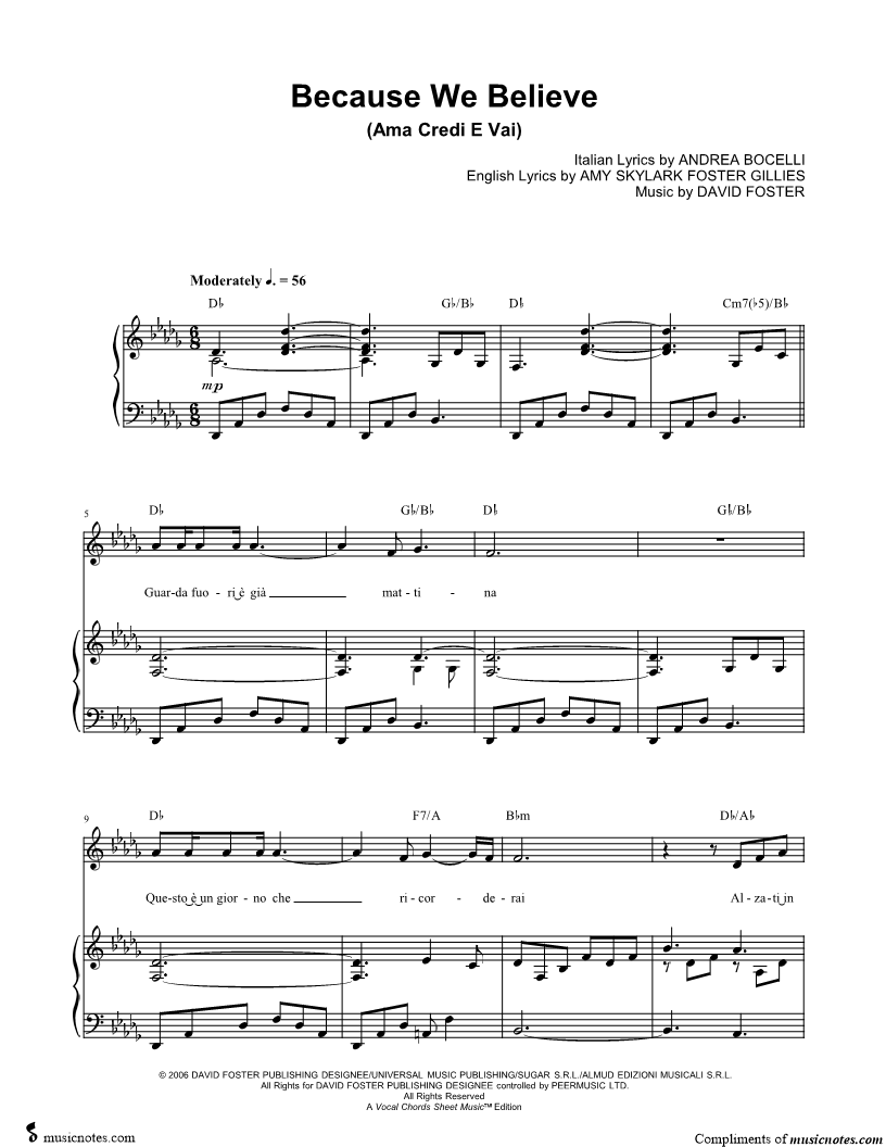 "This is a beautiful arrangement by Andrea Bocelli. Thank you for all your hard work Music-..." Read reviews