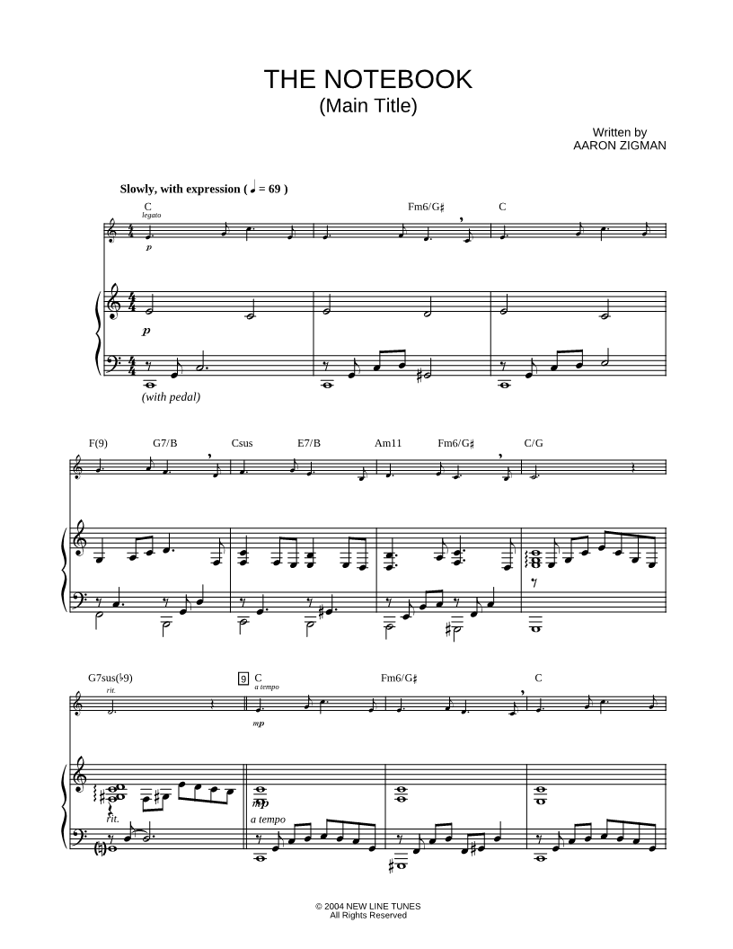 Collection: The Notebook (Main Title) From 'The Notebook,' for Tenor Saxophone and Piano