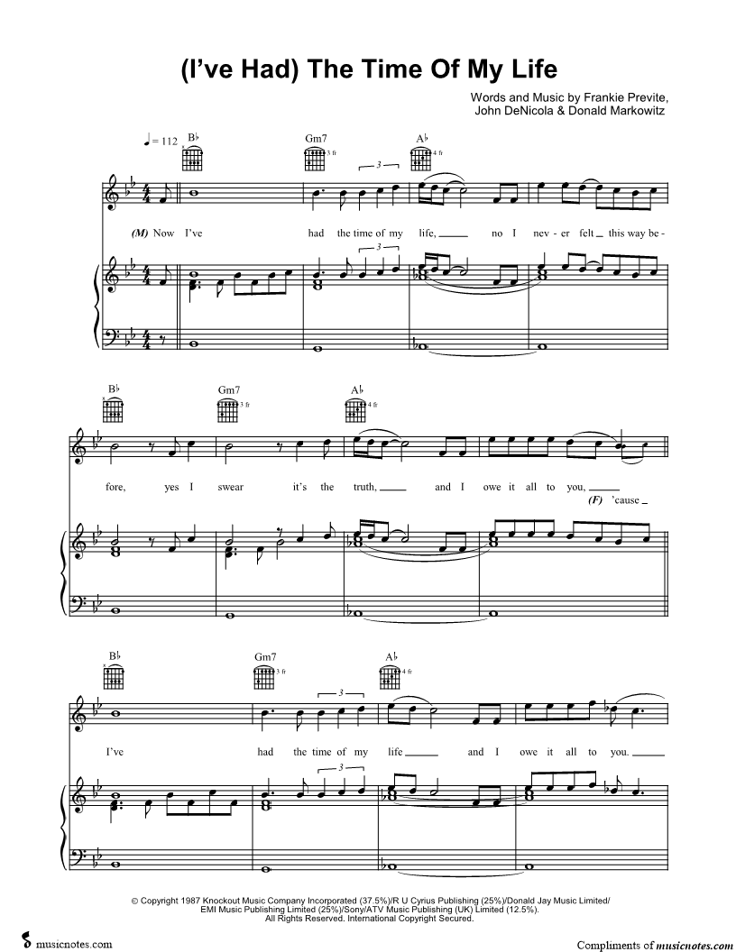 Now I've had the time of my life, no I never felt this way before, yes I swear it's the truth, and I owe it all to you, |