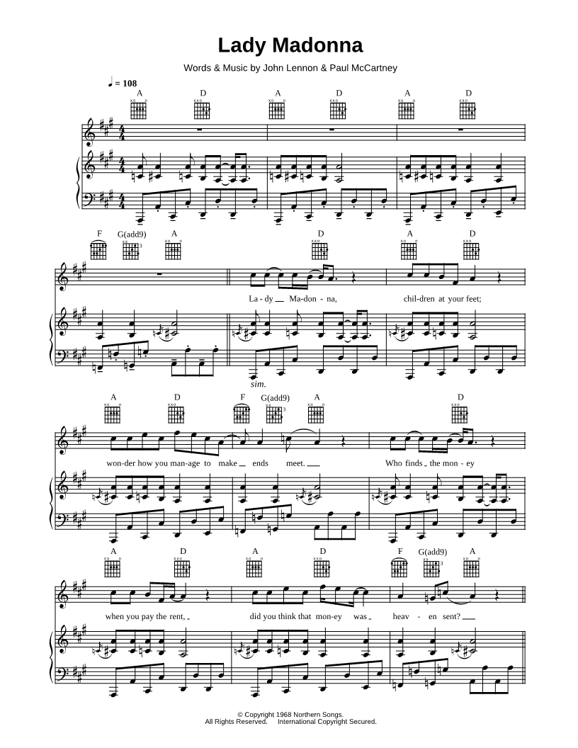Lady Madonna, children at your feet; wonder how you manage to make ends meet. |
