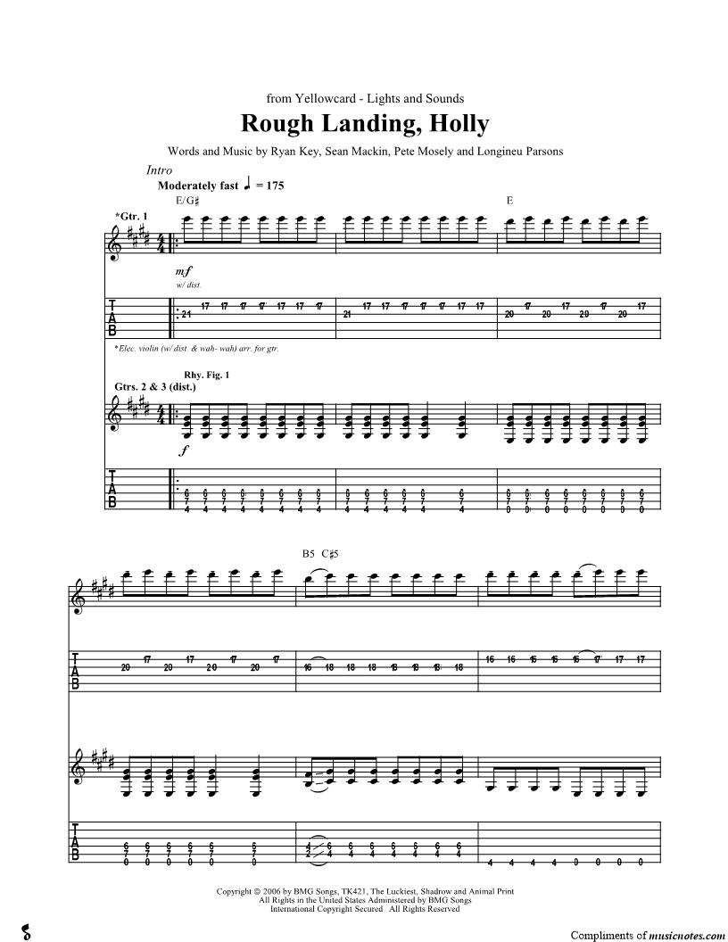 Voice, range: E4-G#5 Guitar 1, range: E3-E6 Guitar 2 Guitar 3 | |