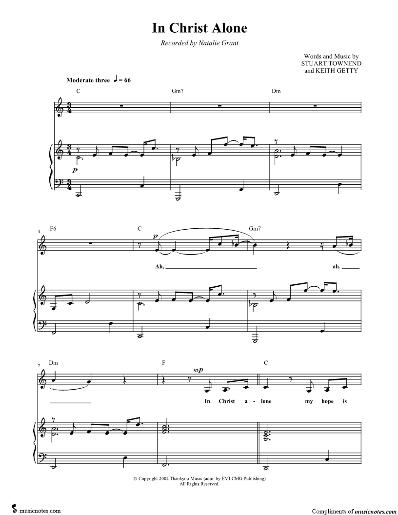 Ah, ah. In Christ alone my hope is found, He is my light, my strength, my song. |