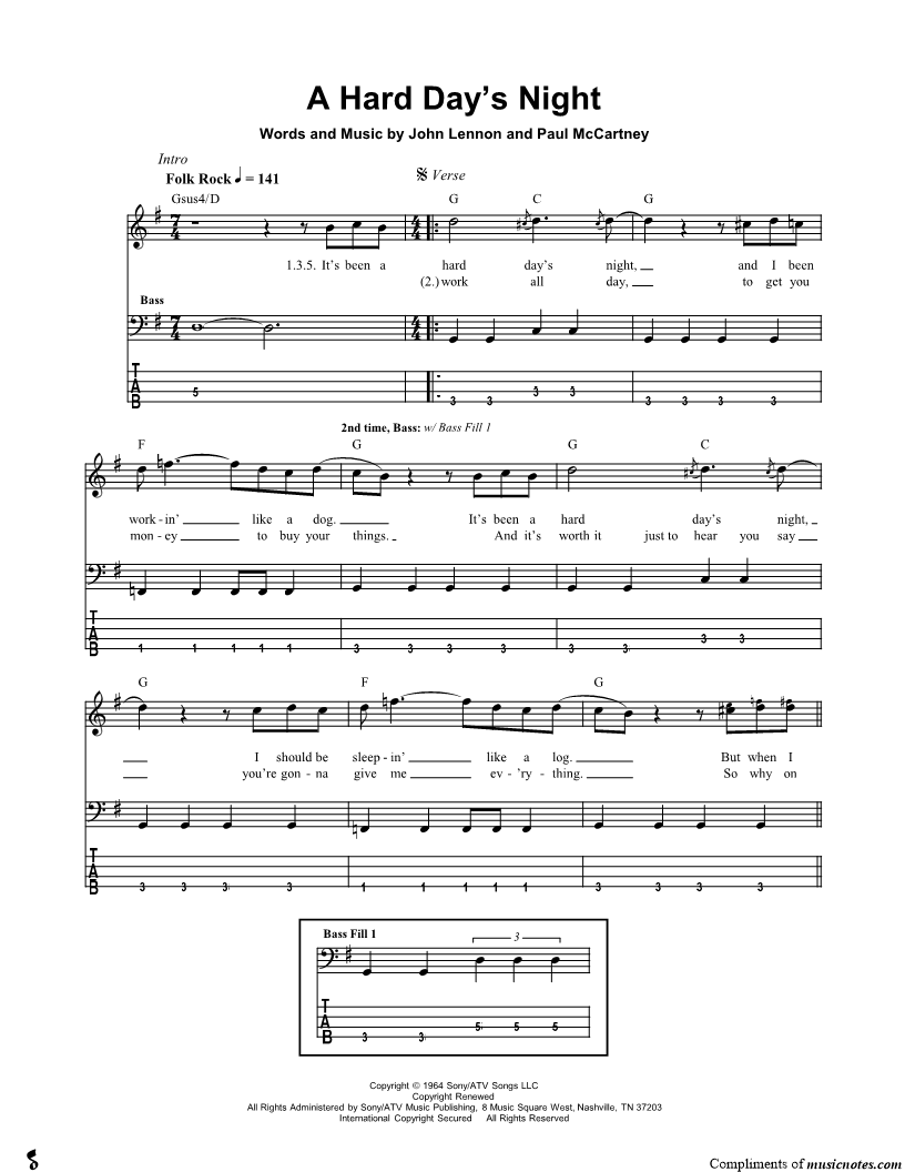 It's been a hard day's night, and I been work in' like a dog. |
