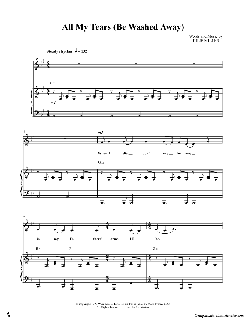 When I die don't cry for me; in my Fathers' arms I'll be. |