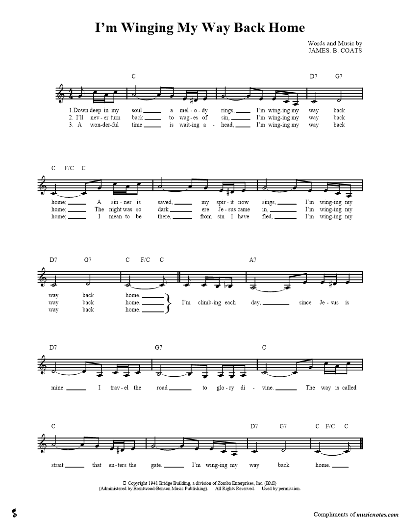 Down deep in my soul a melody rings, I'm winging my way back home; |
