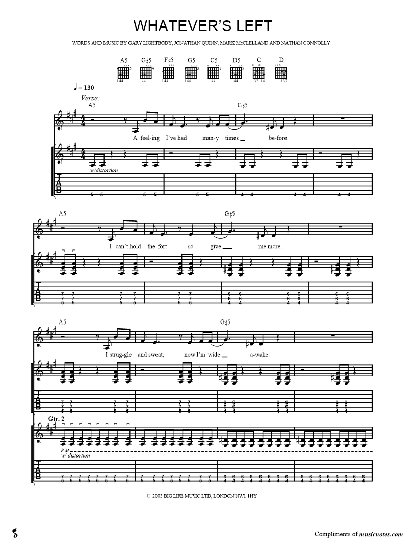 Guitar Tab Guitar/Vocal |