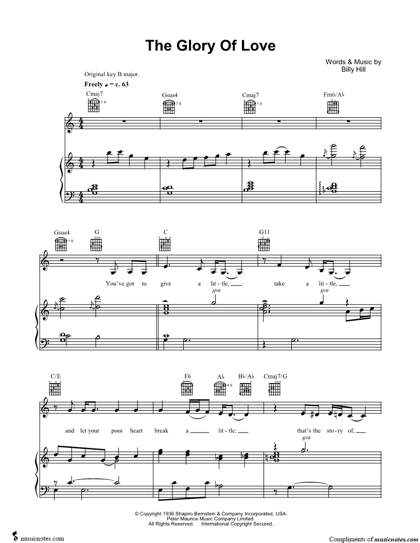 You've got to give a little, take a little, and let your poor heart break a little that's the story of, that's the glory of love. |