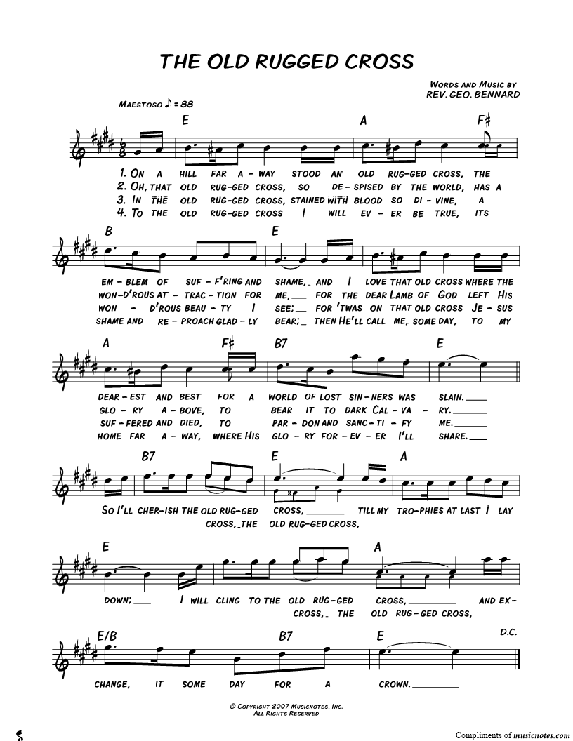 On a hill far away stood an old rugged cross, the emblem of suff'ring and shame, and I love that old cross where the dearest and best for a world of lost sinners was slain. |