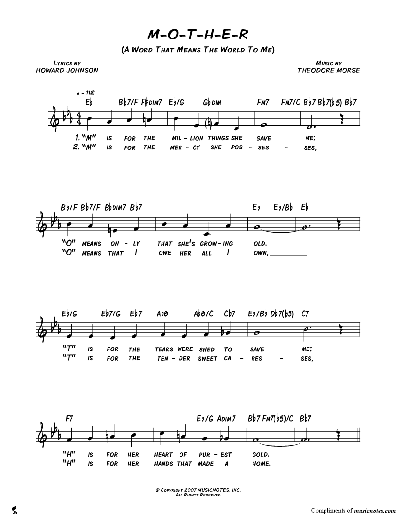 "M" is for the million things she gave me; "O" means only that she's growing old. |