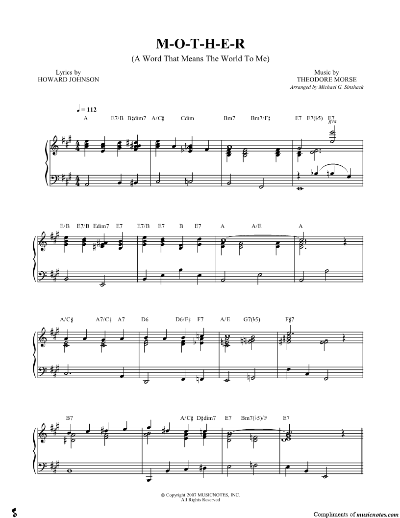 Holiday & Special Occasion Standards Traditional Pop Vocal Pop Mother's Day |