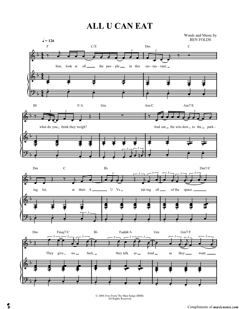 Musicnotes sells a wide variety of digital sheet music products including Singer Pros, Beginner Notes, Choral music, Piano Solos, Lead Sheets, Piano/Vocal/Guitar, Solo and Accompaniment, and fretted instrument tablature.