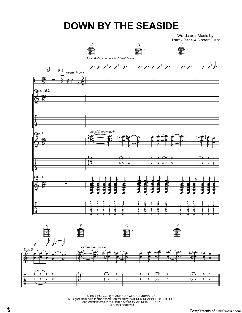 Strum Line Voice, range: G3-D6 Guitar 1, range: A3-E6 Guitar 2, range: A5-A5 Guitar 3, range: F3-C6 Guitar 4, range: F3-G5 Backup Vocals, range: G4-A5 | |