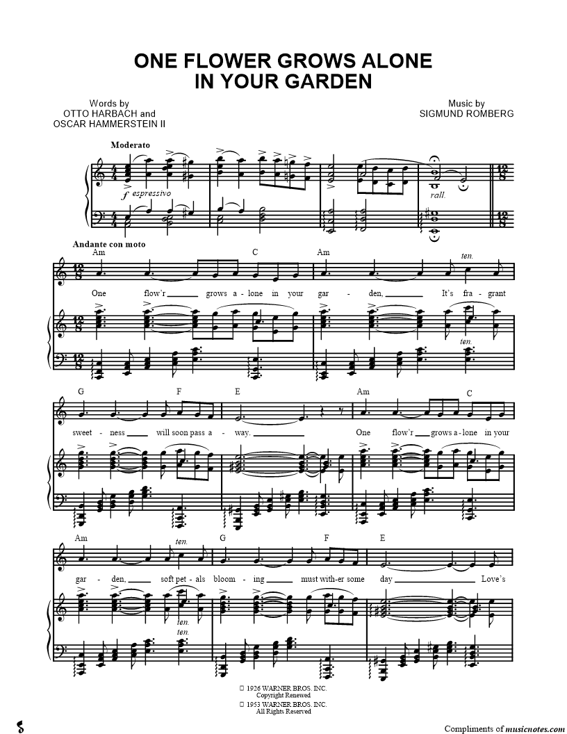 One flow'r grows alone in your garden, it's fragrant sweetness will soon pass away. |