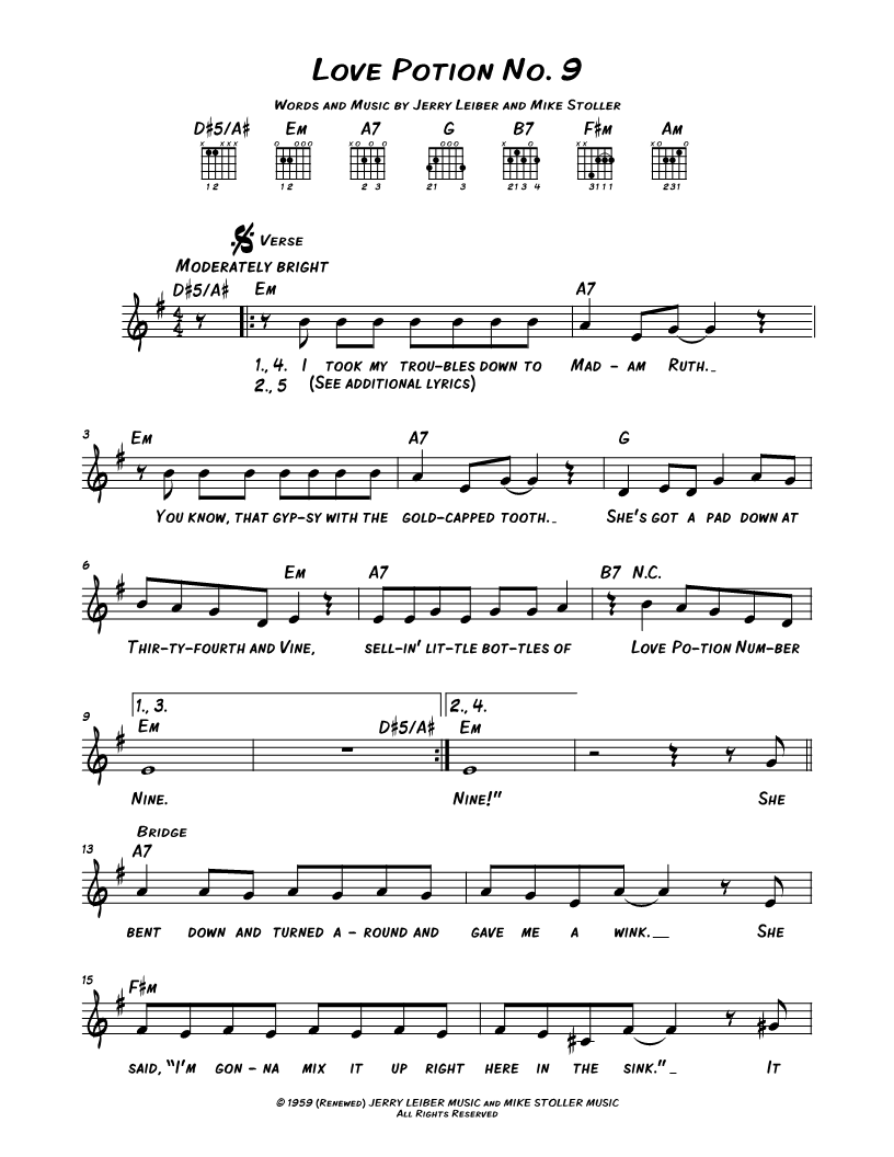 Leadsheets typically only contain the lyrics, chord symbols and melody line of a song and are rarely more than one page in length. Musicians will often use these skeletons to improvise their own arrangements. Leadsheets often do not contain complete lyrics to the song.