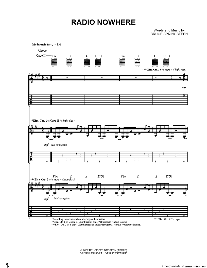 Voice, range: F#4-G5 Guitar 1, range: E3-A6 Guitar 2 Guitar 3 Backup Vocals | |