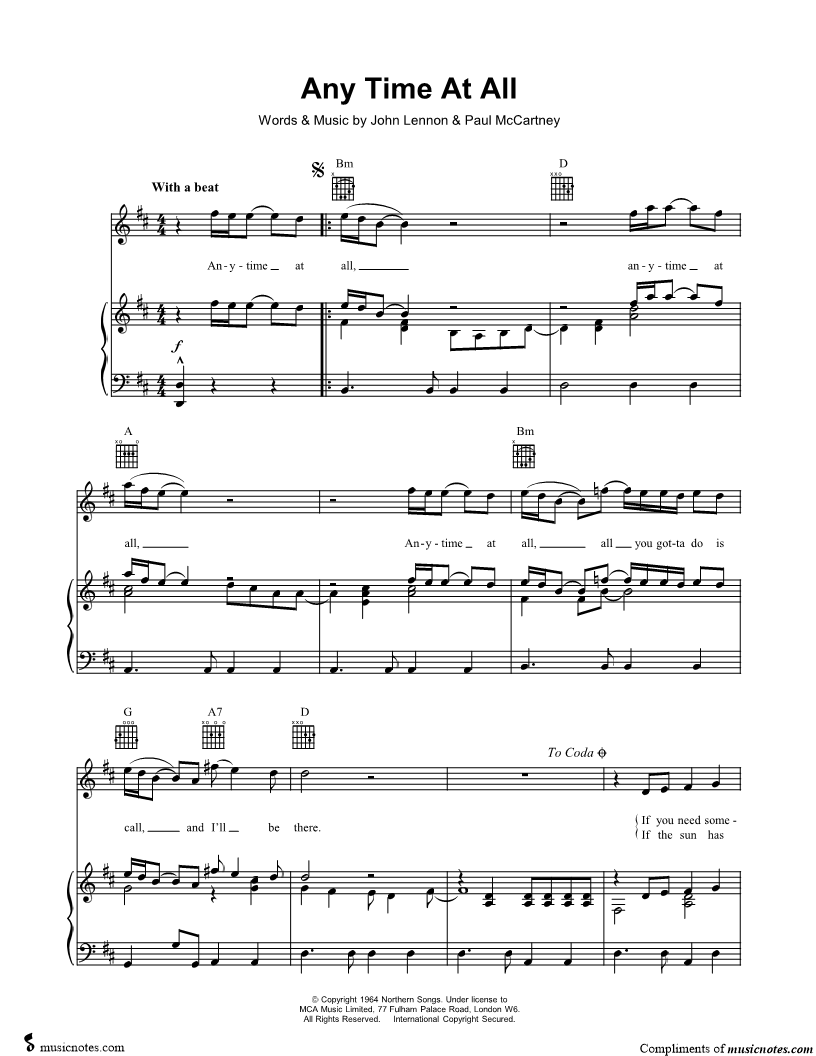Anytime at all, anytime at all, Anytime at all, all you gotta do is call, and I'll be there. |