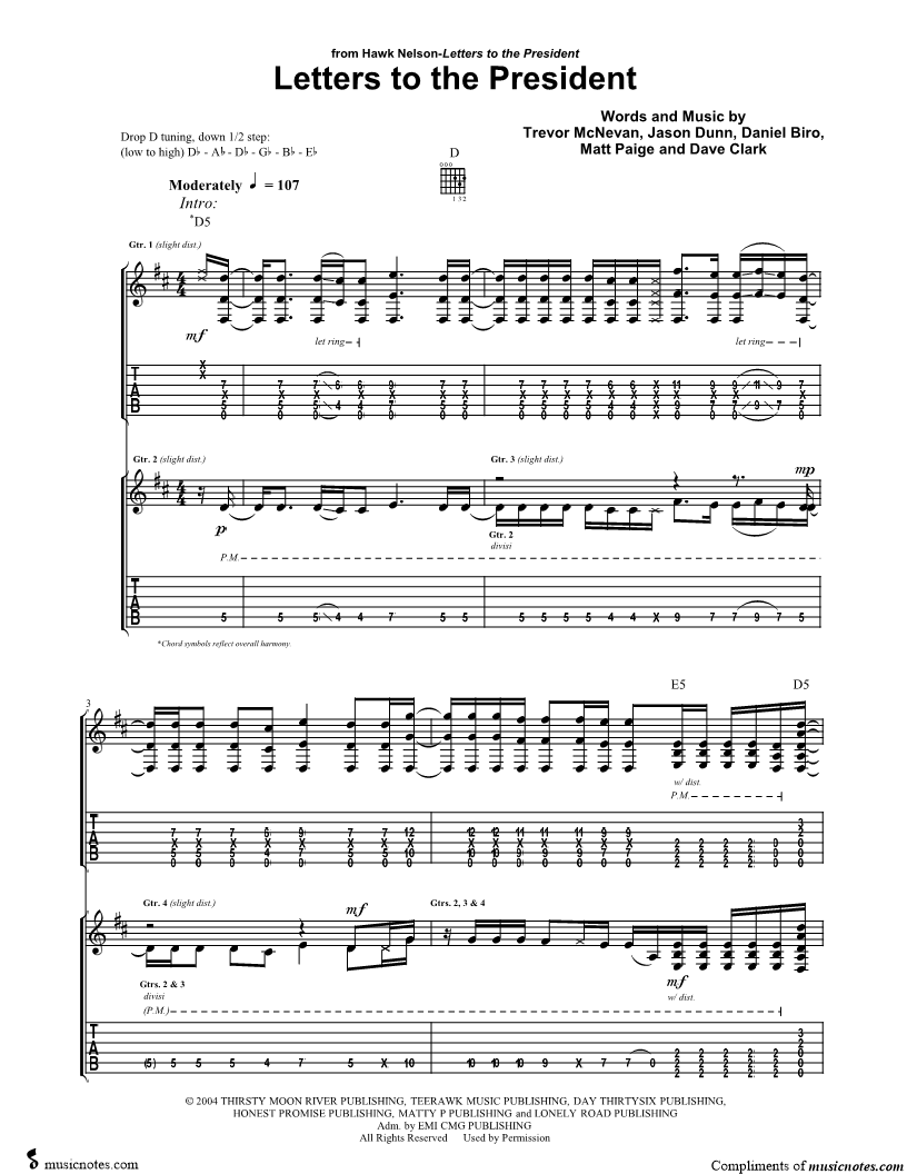 Voice, range: D4-G5 Guitar 1, range: D3-B5 Guitar 2, range: D3-G5 Guitar 3 Guitar 4 Guitar 5 Backup Vocals | |